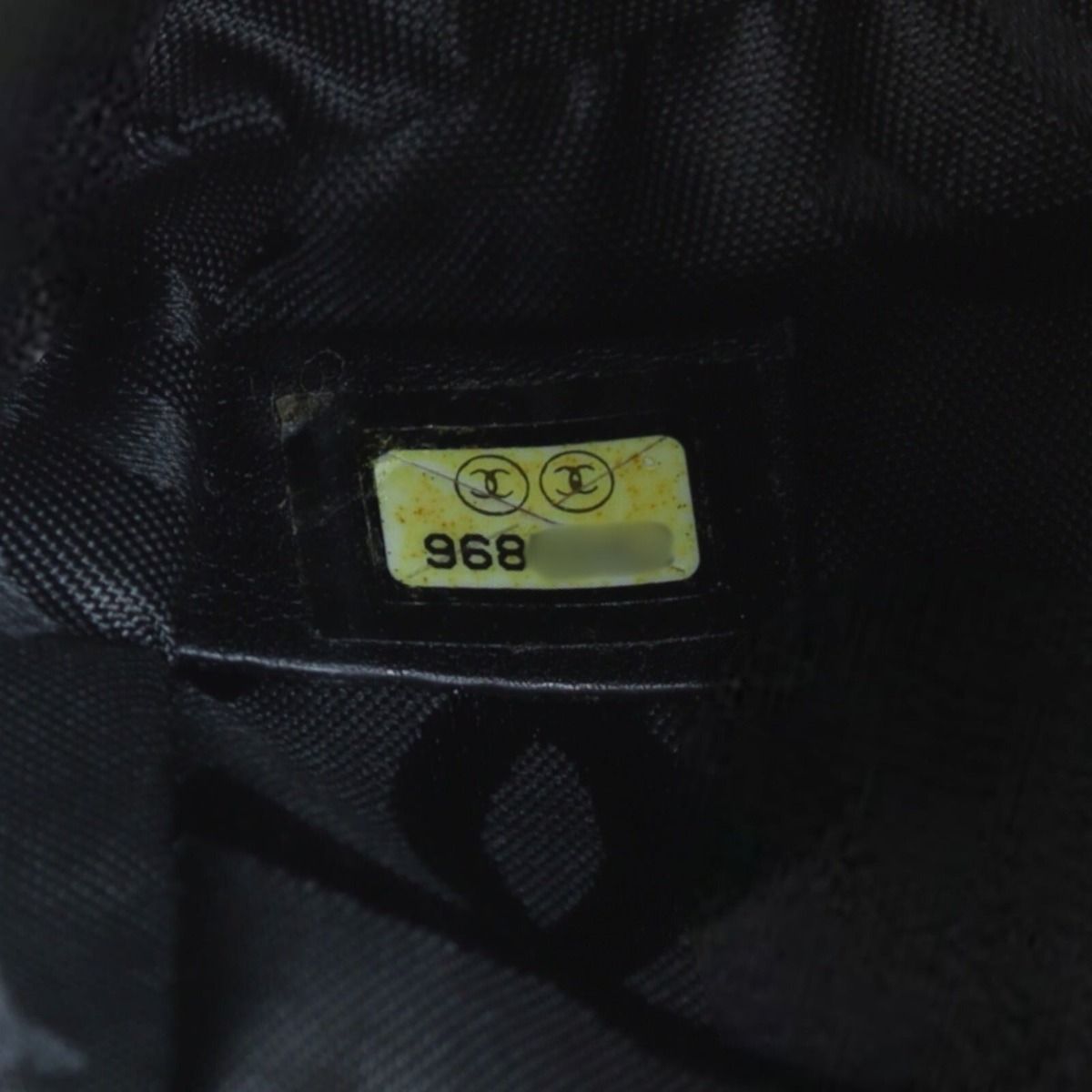 Features: Beige quilted calfskin exterior with black leather CC applique and trim; black double rolled leather handle; silver tone hardware; exterior slip pocket at rear; top zip closure to main compartment; and black textile lining with 1 x zipped pocket.